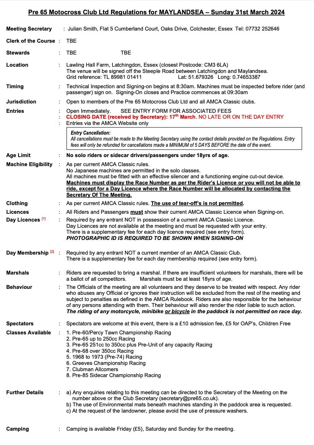 Regs for Rnd 2, Maylandsea, March 31st 2024